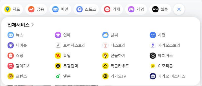 정보 검색 외에도 실생활에 유용한 다양한 편의 기능을 다음 www.daum.net 내에서 이용할 수 있습니다. 카카오맵과 연동된 지도 서비스, 쇼핑 정보를 제공하는 쇼핑하우, 그리고 다음 금융을 통해 증시 및 경제 지표를 확인할 수 있습니다. 이외에도 어학사전과 날씨 정보 등 생활에 필수적인 도구들이 통합되어 있습니다.