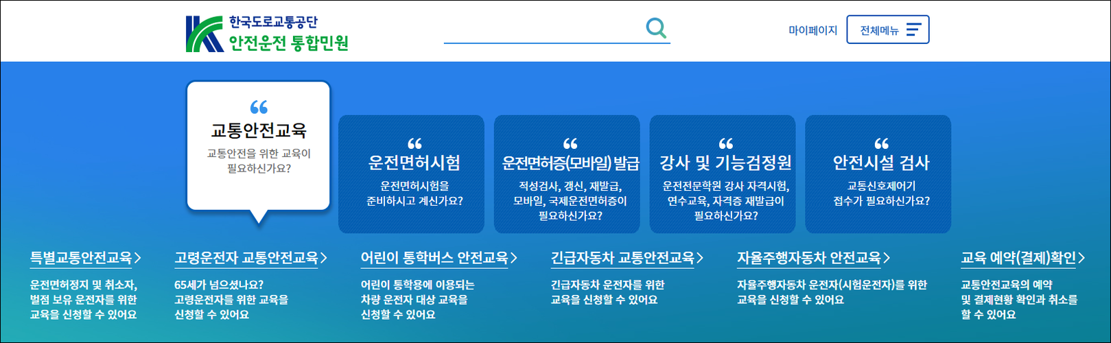 고령운전자 교통안전교육 예약 이용안내 | 한국도로교통공단 안전운전 통합민원