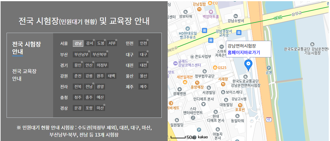 - 신체검사장 미운영 지역 문경, 강릉, 태백, 광양, 충주, 춘천 면허시험장 등